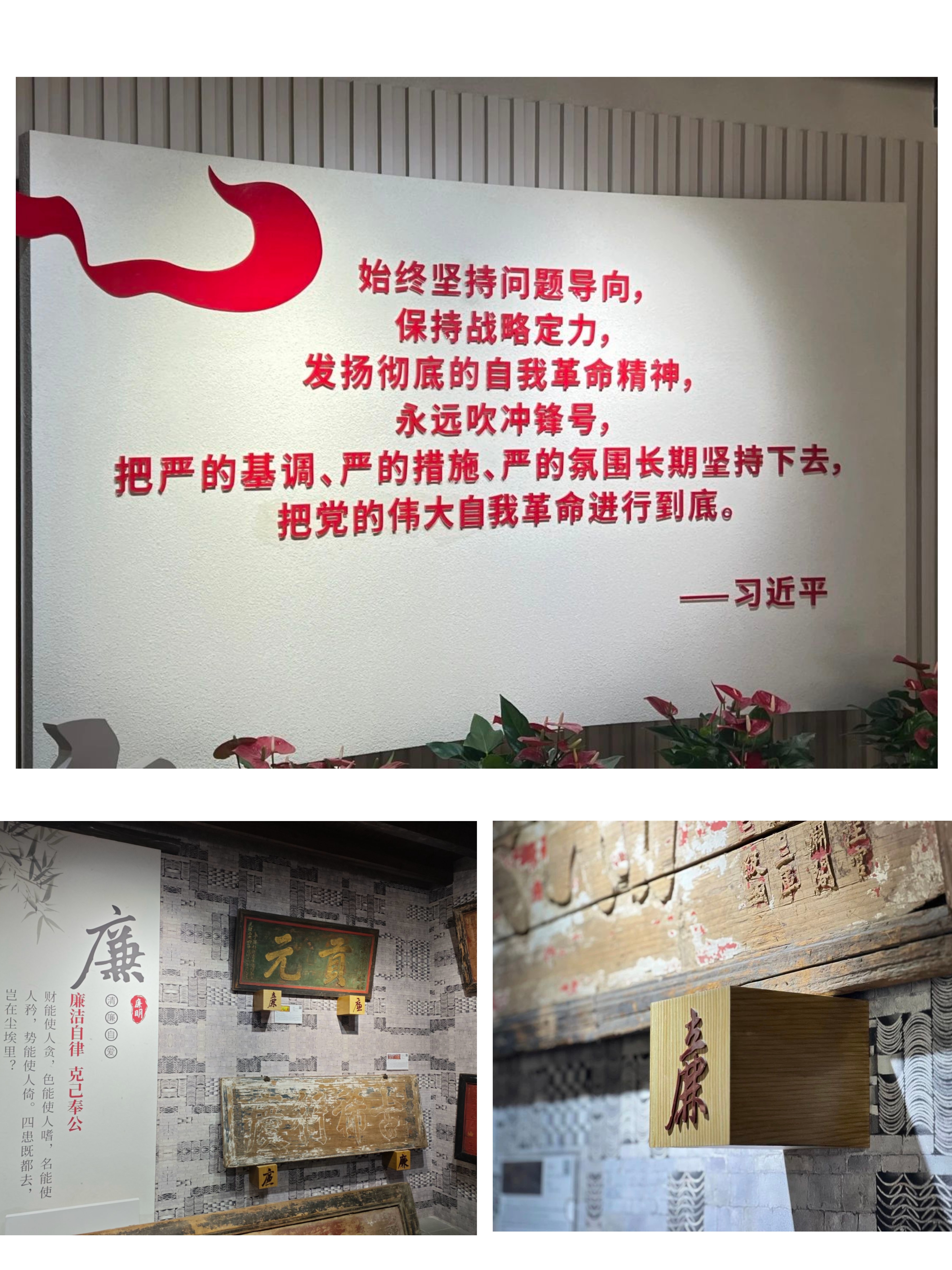 活动当日,教师党员们满怀热忱地走进 “泗水清风” 匾额廉洁文化教育基地。在讲解员的细致引导下,大家依次参观了各个展厅。展厅内,丰富多样的匾额文物、详实生动的史料记载以及精心打造的多媒体展示,从不同角度生动诠释了廉洁文化的深厚内涵与发展脉络。教师党员们认真聆听讲解,不时驻足凝视那些蕴含着廉洁寓意的匾额,深入思考其中所传达的廉洁精神。