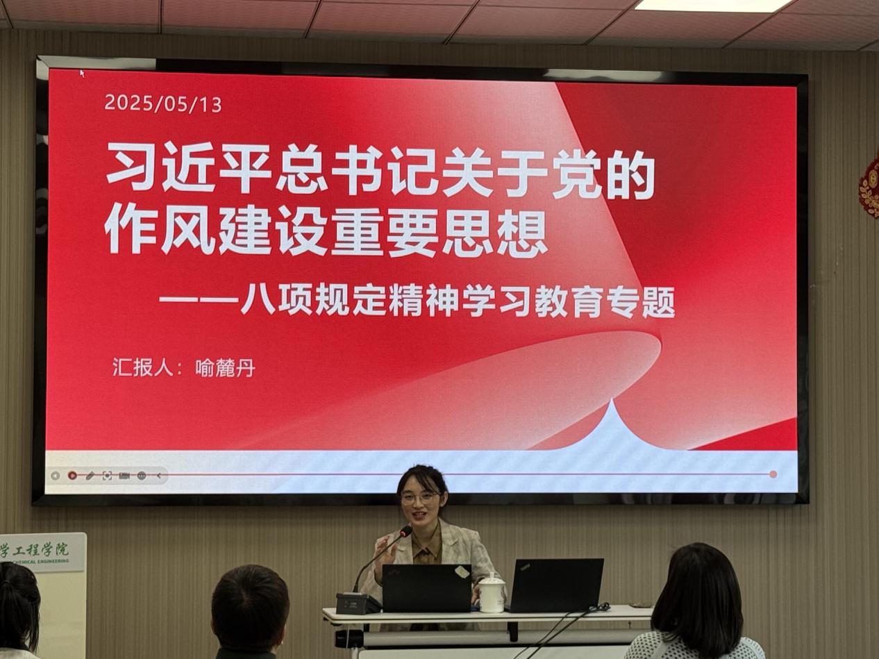 深入贯彻中央八项规定精神学习教育以来,best365中国官方网站党委聚焦主题、持续丰富学习形式,通过二级中心组读书班、支部“三会一课”、教师思政理论学习、网站专栏等多种载体,落实开门教育,确保学习教育走深走实。5月13日,best365中国官方网站党委特邀思政指导员、马克思主义学院喻麓丹老师送教上门,帮助学院进一步凝心聚力、干事创业,在推进高质量发展中展现新作为。
