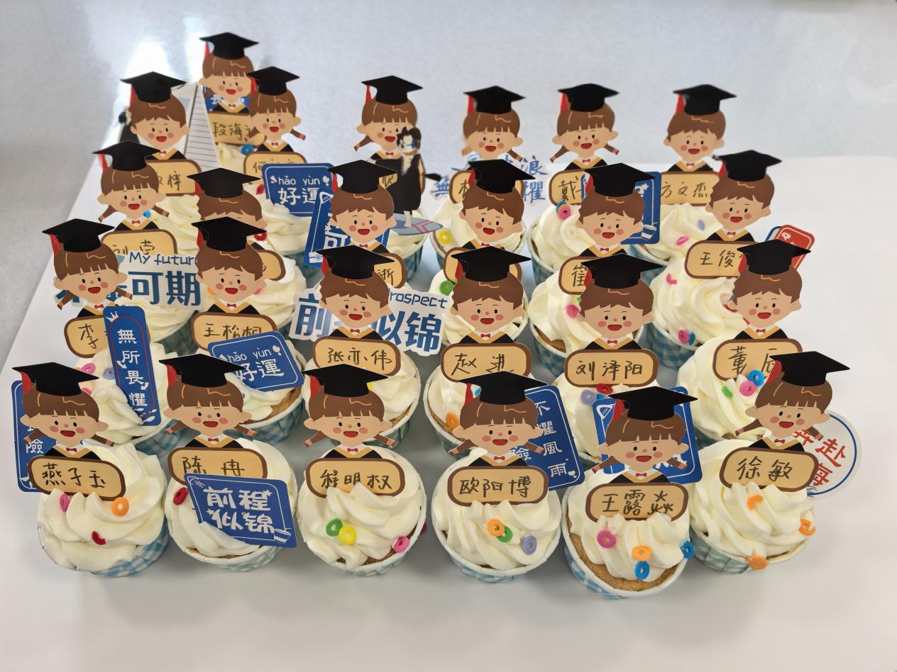 通过紧扣毕业生党员离校教育主线,将“政治生日”仪式与党性教育深度融合,利用庄重仪式感强化党员身份意识,传承支部红色基因。支部为每一位成员都准备了精美的纸杯蛋糕,每个蛋糕上都精心写着全体党员的名字,旁边点缀着象征希望的小雏菊。支部书记王涛寄语:“这是支部为大家准备的毕业惊喜,蛋糕寓意生活的圆满与甘甜,寄托着支部对每位同志的专属祝福,愿你们在青春的赛道上奋力奔跑,续写人生的辉煌篇章!。”