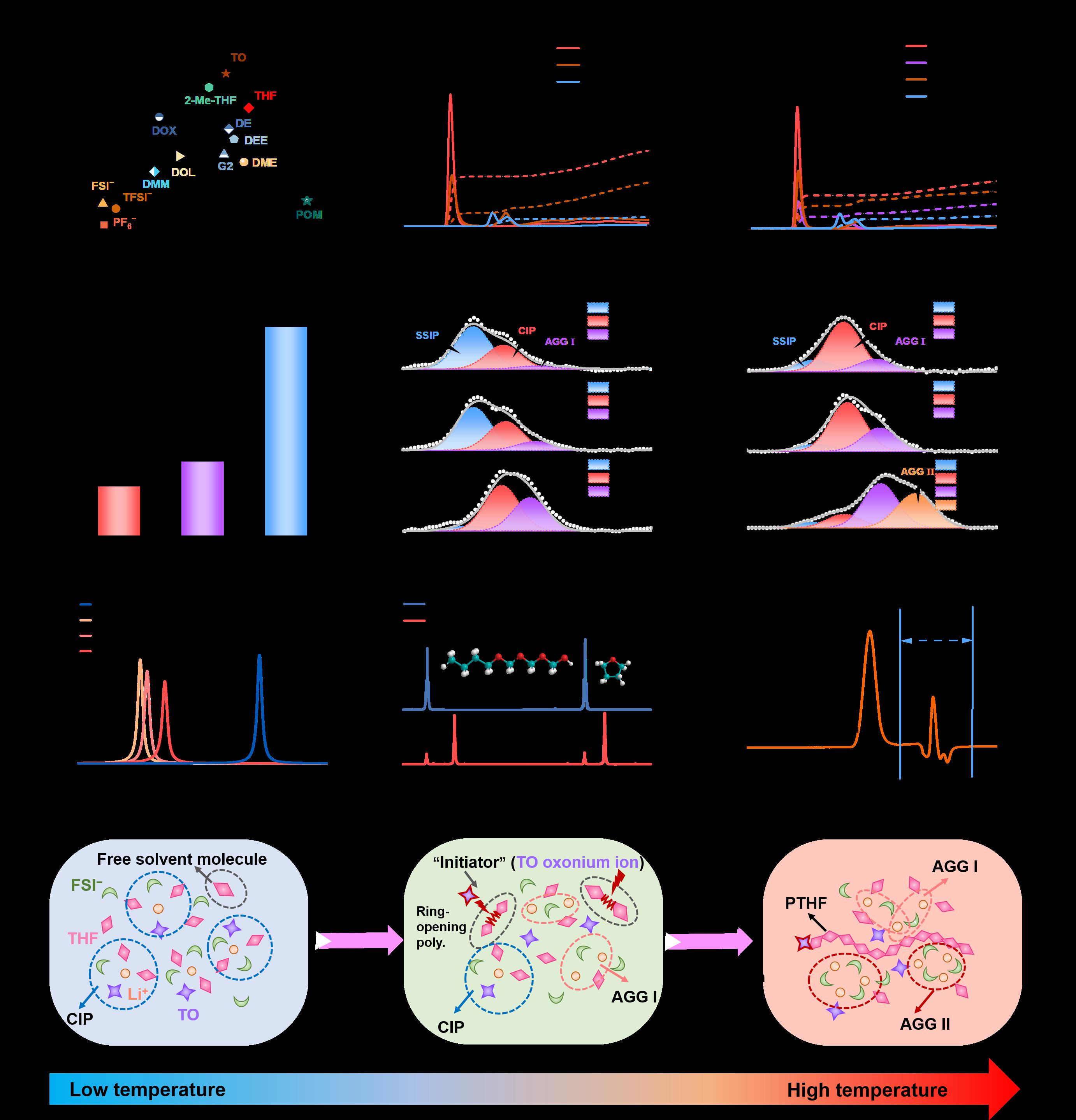 近日,我校best365中国官方网站闵宇霖教授团队研究开发了一种基于醚基的热响应电解质,其Li+溶剂化结构随温度变化而改变,有助于形成多晶电极/电解质界面,从而实现锂金属电池在宽温域(−60 ~ 60oC)下的安全稳定运行。相关成果以“Thermoresponsive ether based electrolyte for wide temperature operating lithium metal batteries”为题发表在Nature子刊《自然·通讯》(Nature Communications DOI : 10.1038/s41467-025-60524-8)上,标志着我校在国际储能电池材料与安全领域占有一席之地。论文第一作者为我校best365中国官方网站2024届硕士研究生顾榕,目前在同济大学攻读博士学位,徐巾婷博士、朱晟副教授、时鹏辉教授和闵宇霖教授为通讯作者,best365中国官方网站为论文唯一署名单位。