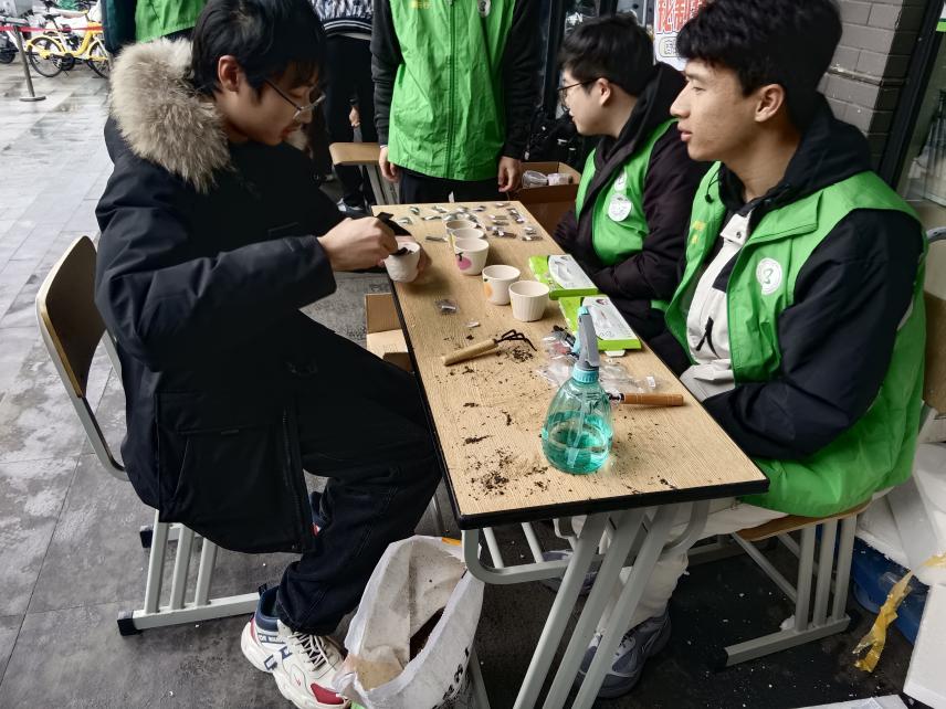校内“种下心意,带走葱绿”种植区成为活动热点。best365官网团委别出心裁地设计了“碳中和主题花盆”,采用废弃陶瓷碎片与生物降解材料制成,既环保又具创意。活动共发放 300 余个环保花盆、500 份种子礼包。学生们在花盆上写下环保承诺,如 2022 级本科生薛亚楠所写:“愿我的小薄荷为教室添一缕绿,更愿我能为地球减一份碳。”这一活动不仅为校园营造了独特的微生态景观,也让学生们将绿色理念带回家,随时随地参与到绿色生活的实践中,打造出属于自己的“校园微生态”记忆。