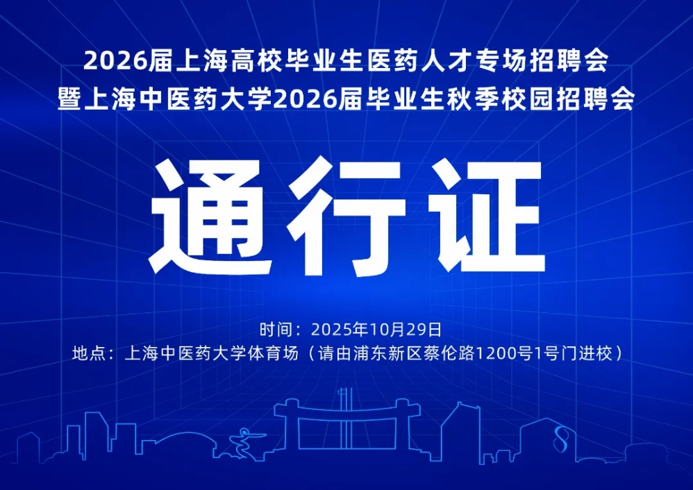 金秋时节,正是逐梦求职好时光!2026届上海高校毕业生医药人才专场招聘会暨上海中医药大学2026届毕业生秋季校园招聘会即将开启,我们诚挚邀请各位同学携梦而来,与众多优质用人单位面对面交流,开启职业生涯的崭新篇章!