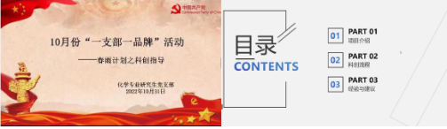 会议开始在管森玲与戴佳欣同志带领下,向支部成员多层次,全方面地讲解有关科创的项目地确立及过程问题地整改。通过两位同志的科创活动的经验分享,使得支部成员对科创有了更加全面深刻地理解。会议最后由李艳同志做总结性发言,呼吁大家在新时代展开之际,作为一名研究生,要积极参加科创实践活动,在学好理论知识地同时着重训练提升自身实验素养,研究理论,做出实践。
