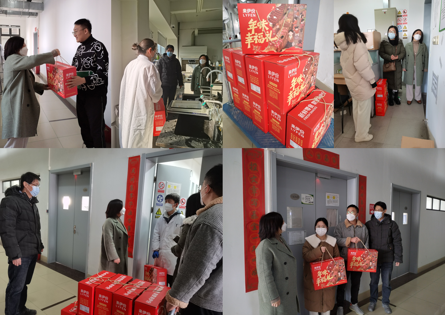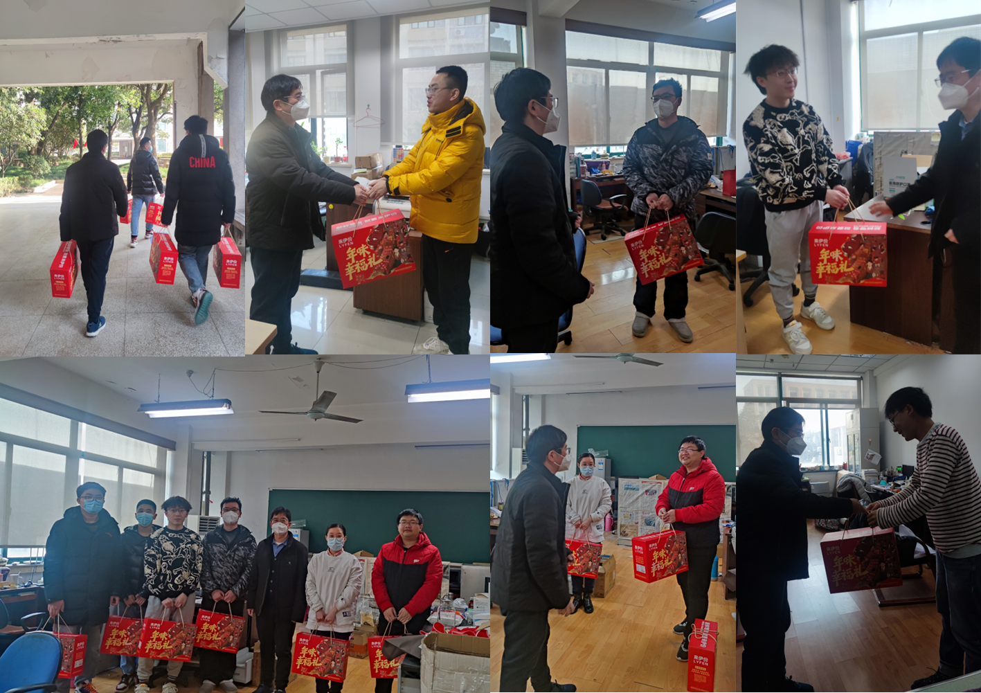 慰问过程中,老师们亲切询问留校学生们在校的生活和学习情况,了解大家的所盼所需。并叮嘱学生们在校期间一定要注意人身安全、财产安全、实验安全,继续坚持做好个人疫情防护;要劳逸结合、注重锻炼身体;也要主动与父母沟通联系,分享在校生活,让家人放心,争取在校度过一个安全、温暖、充实、有收获的新春假期。最后,老师们为每一位留校过年的学生送上了新春慰问品和春节祝福,同学们感受到了浓浓“年味儿”,心里也倍感温暖。他们向老师们汇报了自己在校的学习、科研进展和收获体会,表示会认真遵守校规校纪,安排好学习和生活,多与导师、辅导员和家长联系沟通,让留校的假期更加充实、有意义。