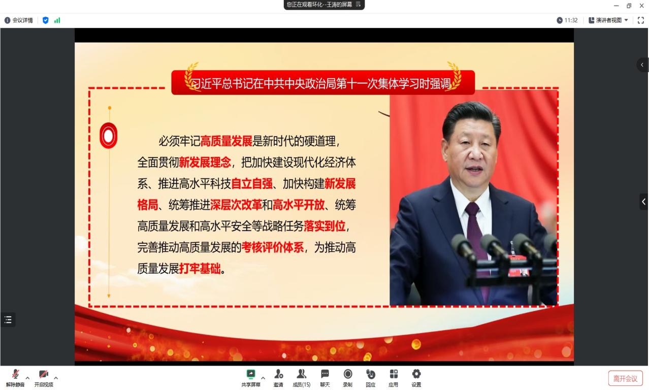 会上,闵宇霖通报了学校关于成立《关于在高水平地方高校创新团队成立党员先锋队的通知》,希望团队成员能够发挥党员挑大梁、做表率、当骨干的作用,以党建引领聚焦业务发展,创建团队文化形成团队共识,增强团队凝聚力。接着团队联络员王涛就习近平总书记在中共中央政治局第十一次集体学习时的讲话《加快发展新质生产力扎实推进高质量发展》开展了理论领学,团队成员将自己的学习感悟在会上做了交流。随后,团队年轻教师结合自己研究方向,聚焦团队研究方向做了详细的汇报。
