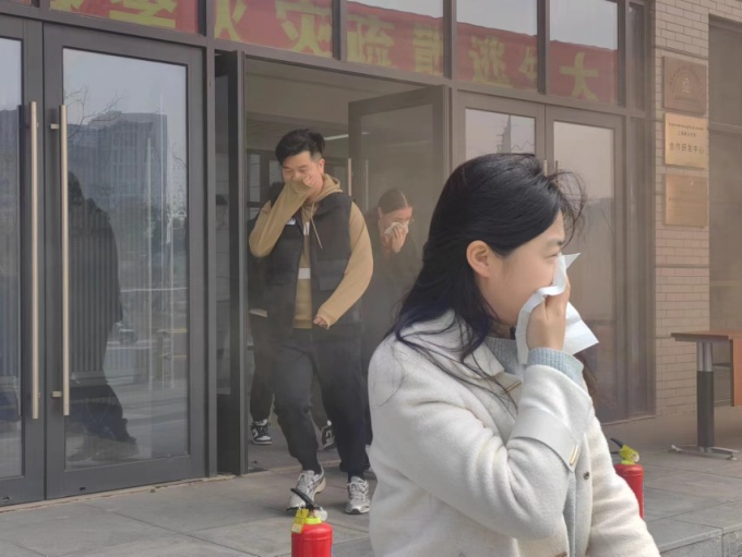 中午12点20分,各楼层工作人员准时拉响火警铃声,并迅速指引各楼层人员沿逃生通道安全有序撤离。在疏散过程中各位师生听从指挥,井然有序。灭火器使用示范环节,多位本科生、研究生及教师代表进行操作实练。