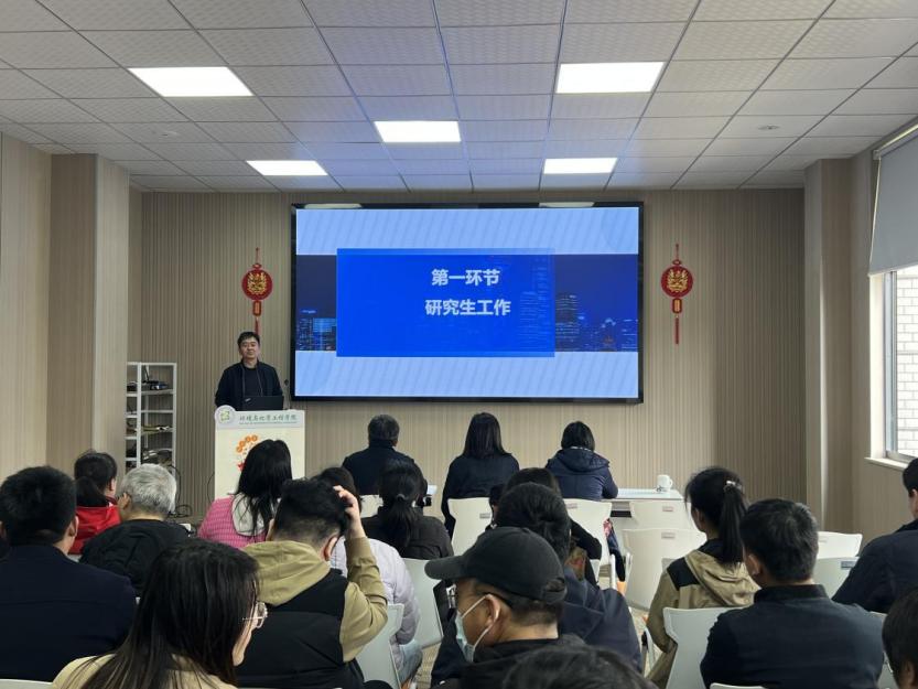 学院副院长时鹏辉通报了研究生教育和科研工作,特别提到了24届学生的毕业情况,并对毕业论文审核时间节点及研究生招生工作的注意事项进行了细致部署。
