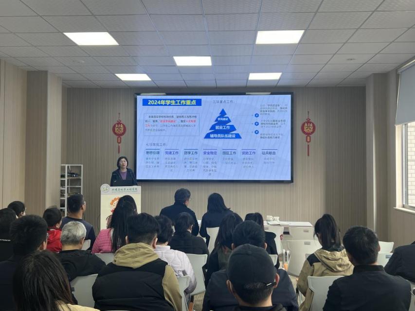 学院党委副书记涂莹亮针对本学期学生工作的重点进行了布置,明确辅导员要与专任教师紧密配合,在思政教育上下功夫,共同营造良好的学风。会上也特别提到了本年度学院学生的就业工作,期望全院师生形成强大合力,推动学生就业工作稳定有序进行。