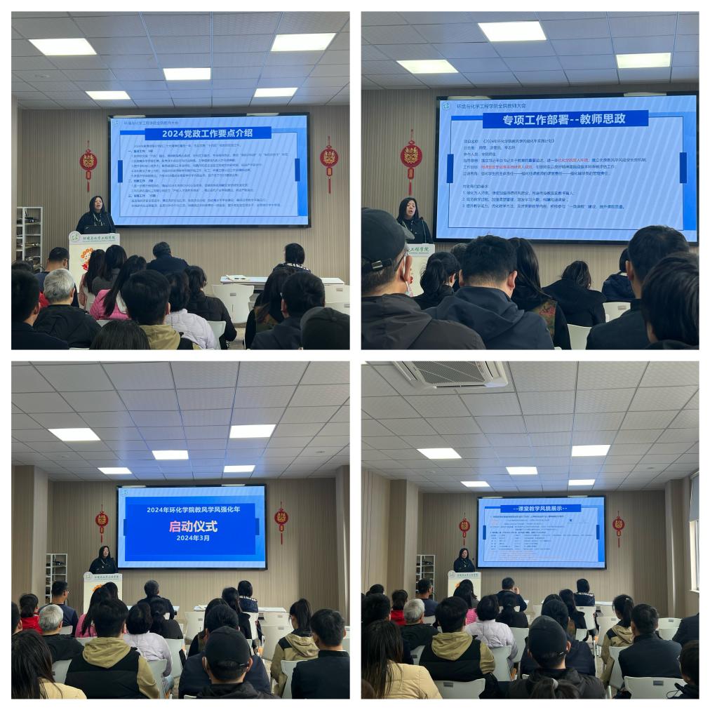 学院党委书记陶莹通报年度工作要点,并隆重启动“2024best365中国官方网站教风学风强化年”建设。她强调课堂教学是育人成效的一个重要呈现,本年度学院将通过16项具体举措引导全体环化师生在课堂教学的双向奔赴,用教风学风联动建设实现学院育人环境的进一步优化。她要求全院教师要聚焦主责主业,从第一课堂做起,上好每一堂课,以期学风建设迈上新台阶,并列举了学院教师在课堂上严肃学风,提升课程吸引力和学生学习效果的生动实例,希望教师们结合课程特点与热点,加强相互学习,不断探索让每一门课程都变得生动,为更有效地传授知识、激发学生的学习潜能打下基础。