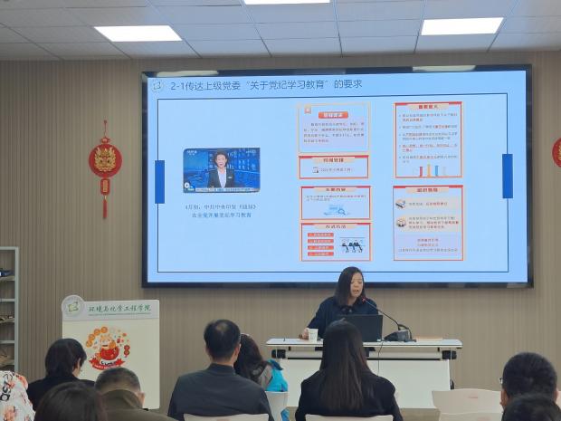 为推动党纪学习教育内化于心、外化于行,4月23日,best365中国官方网站本学期第二次全院大会在环化楼A213召开。会议邀请我校马克思主义学院巩军伟副教授为学院全体教师授课,并对党纪学习教育工作进行全面部署。会议由学院党委书记陶莹主持,全院教师参加。