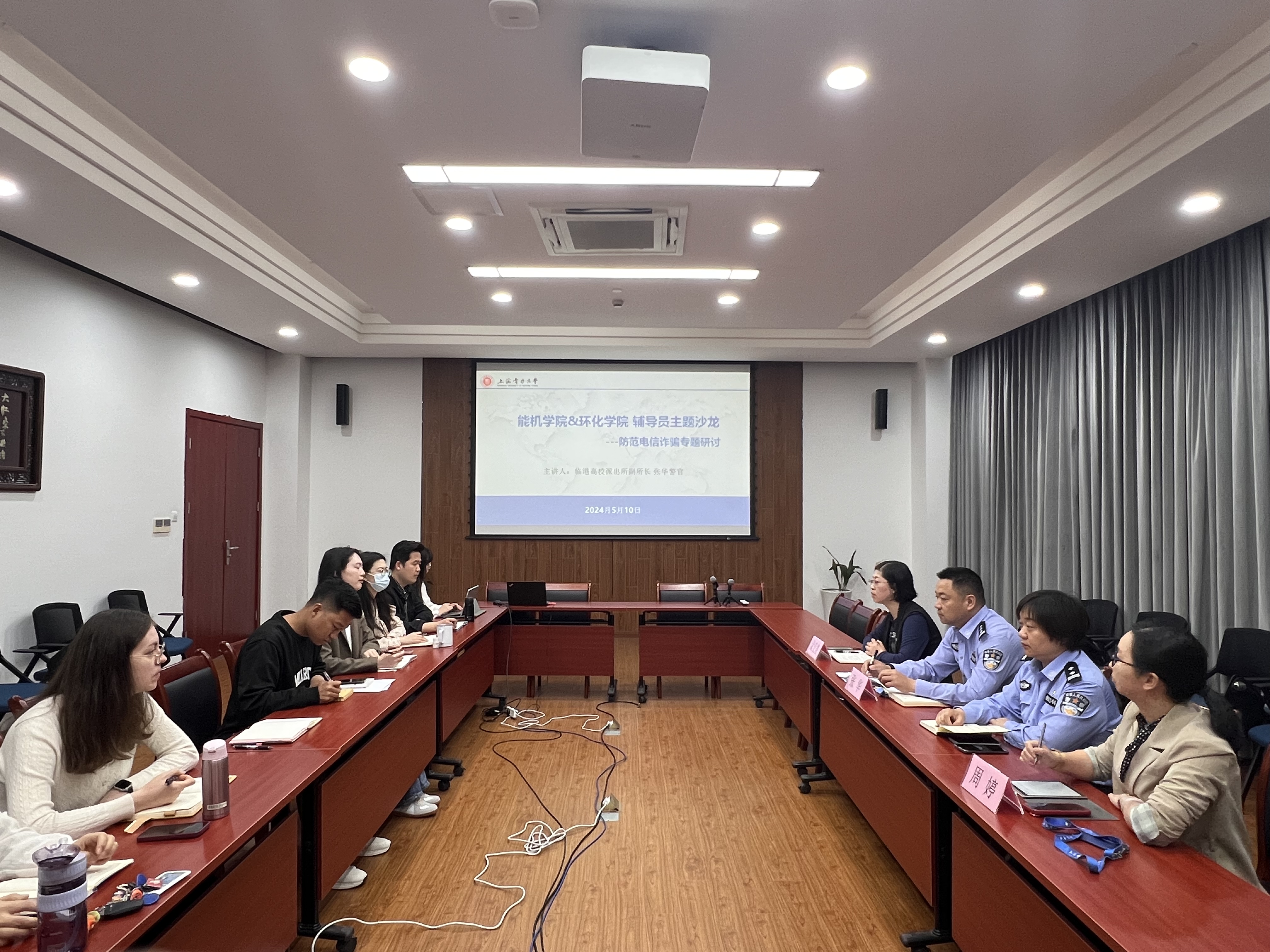 为进一步加强辅导员队伍建设,提升辅导员开展防范电信网络诈骗工作的意识和能力,扎实推进学生防范电信网络诈骗教育工作,5月10日上午,能机学院和best365中国官方网站特邀临港高校派出所副所长张华、警官朱红到校,就预防电信网络诈骗知识开展专题培训,研讨高校学生反诈工作重点。能机学院党委副书记周婷、best365中国官方网站党委副书记涂莹亮、保卫处治安科科长王旭和辅导员参加本次沙龙。