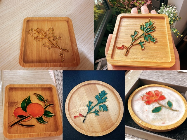 掐丝珐琅被国家列为第一批非物质文化遗产,有着悠久的传承历史。活动现场,指导老师详细介绍了掐丝珐琅的历史、制作步骤、技巧及注意事项,并现场进行了演示。在老师的带领下,师生纷纷开始着手设计,一弯、一绕、捻丝、上色、封层......,用金属勾勒轮廓,用釉料填充色彩。看似普通的金丝,在一番弯折处理后,构成一个个精巧细致的图案,搭配色彩鲜艳的釉料,呈现出意境美的同时,还展现出令人惊喜的立体艺术效果,一副色彩斑斓的杯垫完美呈现。同学们纷纷表示“以自己双手感受到非遗传统手工艺的魅力。”
