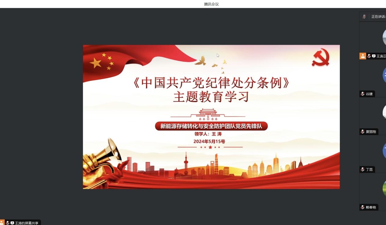 党纪学习促提升 创新业务谋发展---新能源存储转化与安全防护创新团队召开党员先锋队理论学习研讨暨工作情况研讨会