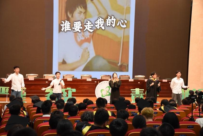 毕业典礼开始前,环化学子用歌声唤起同学们对大学时光的美好回忆和不舍之情,用《世界上不存在的歌》《你曾是少年》《再见》等熟悉的旋律“把爱留在环化”。