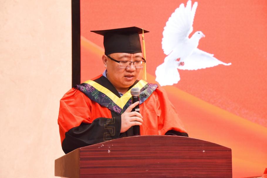 环境工程系张大全教授作为教师代表发言,为全体毕业生送上深深的祝福,寄语毕业生要保持对知识的热爱和渴求、要勇于面对挑战和困难、要珍惜身边的人和事,惟愿同学们今后长空万里,一片坦途。