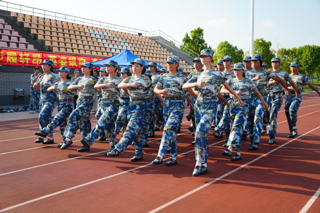 在慰问之前,一场精彩的军训预演已经拉开帷幕。仅仅经过一周的训练,新生们就以矫健的步伐、笔挺的军姿、洪亮的口号和整齐的队列,完美地展示了他们的训练成果,充分彰显了环化学子的良好精神风貌。陶莹书记代表学院向全体带训教官和参训学生致以诚挚的慰问,对教官们和带训老师们的辛勤付出表示衷心感谢,对学生们在军训期间热情饱满的精神状态和刻苦训练的积极态度表示高度的赞扬。她指出,军训作为大学生进入大学的第一堂课至关重要,是磨砺坚强意志、塑造优秀品格、强化人际沟通以及增强班级凝聚力的关键时期。她鼓励同学们将在军训中培养的优良品质融入到未来的学习与生活中,勇于面对困难,持续完善自我人格,努力成为一名优秀的青年大学生。同时,她也期望同学们珍惜剩余的训练时光,全力以赴刻苦训练,在最后的汇演中展现出高水平,提交一份令人满意的军训“成绩单”。