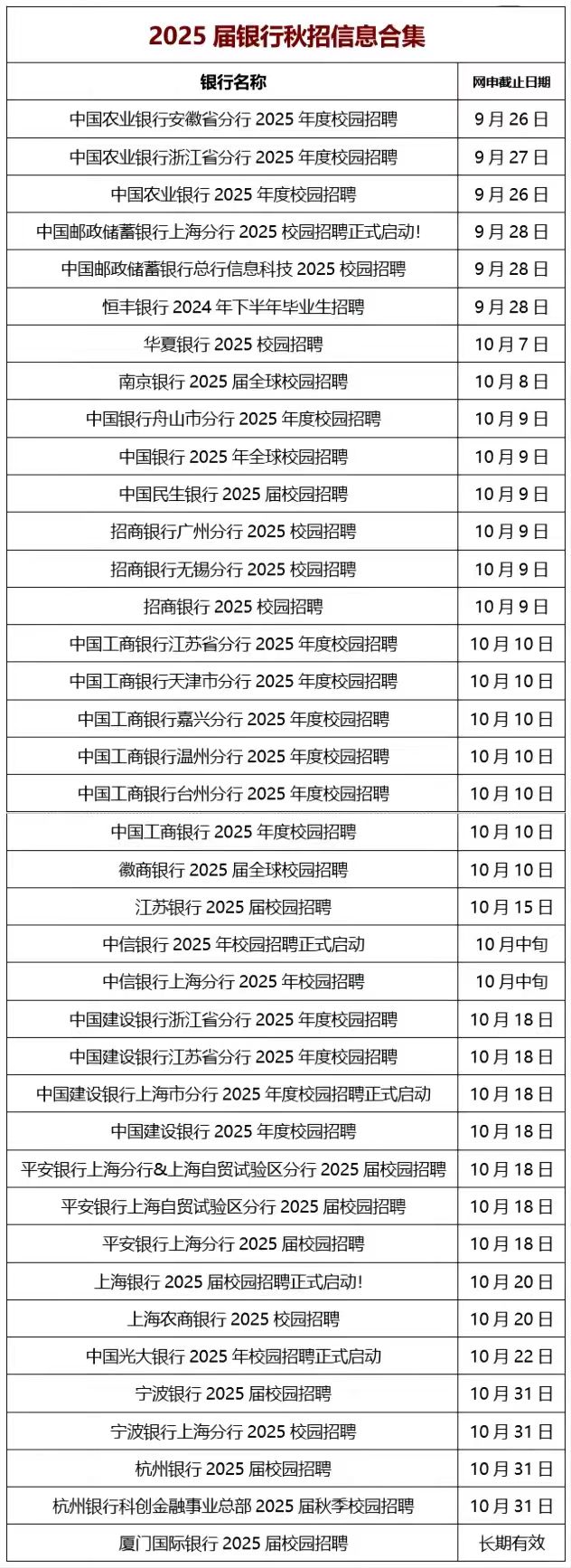 院2025届就业信息【18】——2025届银行秋招信息合集