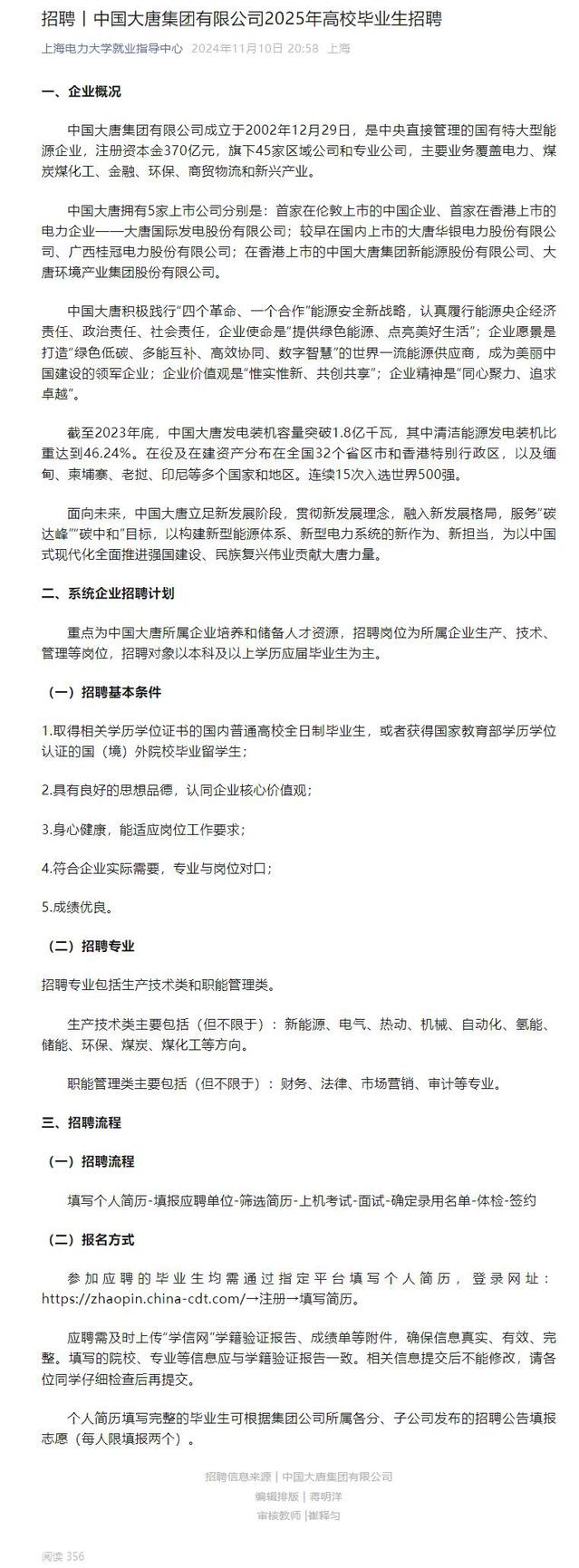 院2025届就业信息【45】——中国大唐集团