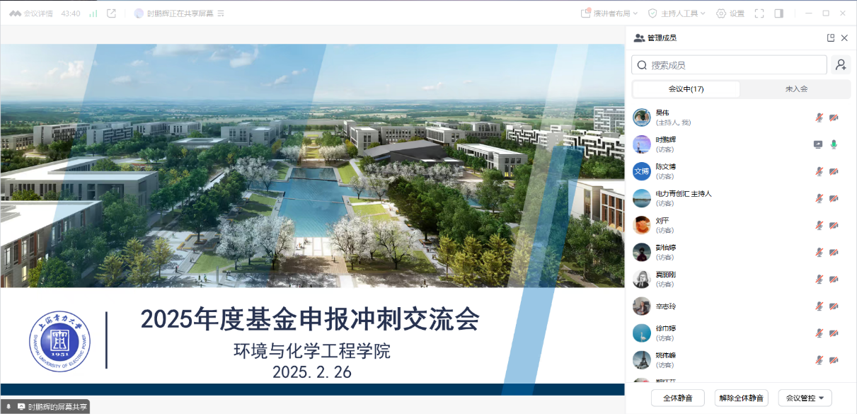 会议伊始,时鹏辉强调,当前已进入本年度基金申请的关键冲刺阶段。他希望各位申报教师能够充分利用剩余时间,精心打磨申报书,并积极向经验丰富的专家请教,对申报书进行进一步细化与完善,力求在冲刺阶段实现申报书质量的显著提升。同时,时教授表示,学院将一如既往地为申报教师提供全方位的支持与帮助,全力解决教师在基金撰写与申报过程中遇到的各类问题。