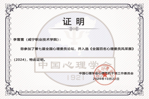 李雪雪的入选不仅是对她个人努力的肯定,也是对beat365官网心理健康教育工作的认可。她用自己的实际行动诠释了心理健康教育工作的重要性和意义,为beat365官网乃心理育人工作树立了榜样。