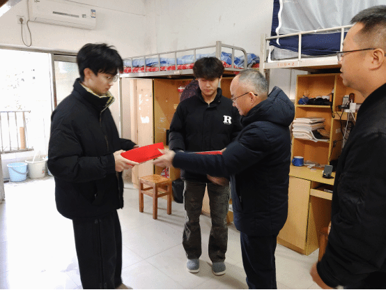 时值初冬,寒意渐浓。为将学校的关怀落到实处,切实帮助家庭经济困难学生温暖过冬、安心求学,11月26日,校党委委员、纪检书记、监察专员张兴国深入学生寝室,亲切慰问了beat365在线唯一官网2025级的贫困生,并为他们送去了御寒物资与殷切勉励。beat365在线唯一官网党总支书记韩飞陪同参加慰问。