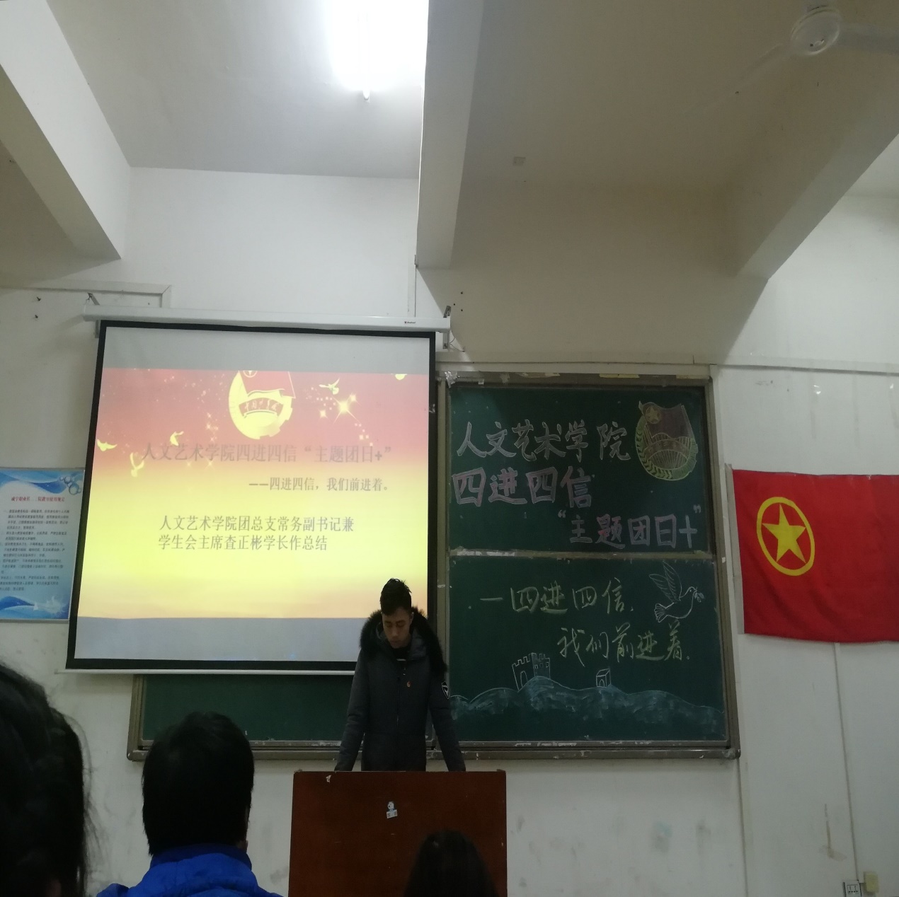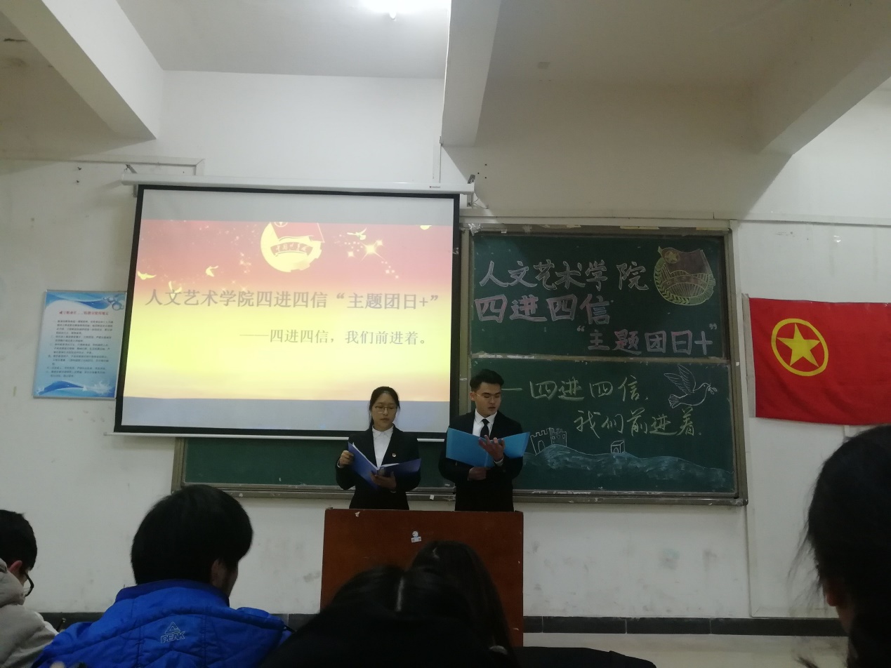12月28日晚,beat365在线唯一官网团总支组织部在文A106教室举行主题为“四进四信,我们前进着”的四进四信 “主题团日+”活动。参加本次活动的有beat365在线唯一官网主席团全体成员、团总支学生会全体部长及18级各班班长、团支书。