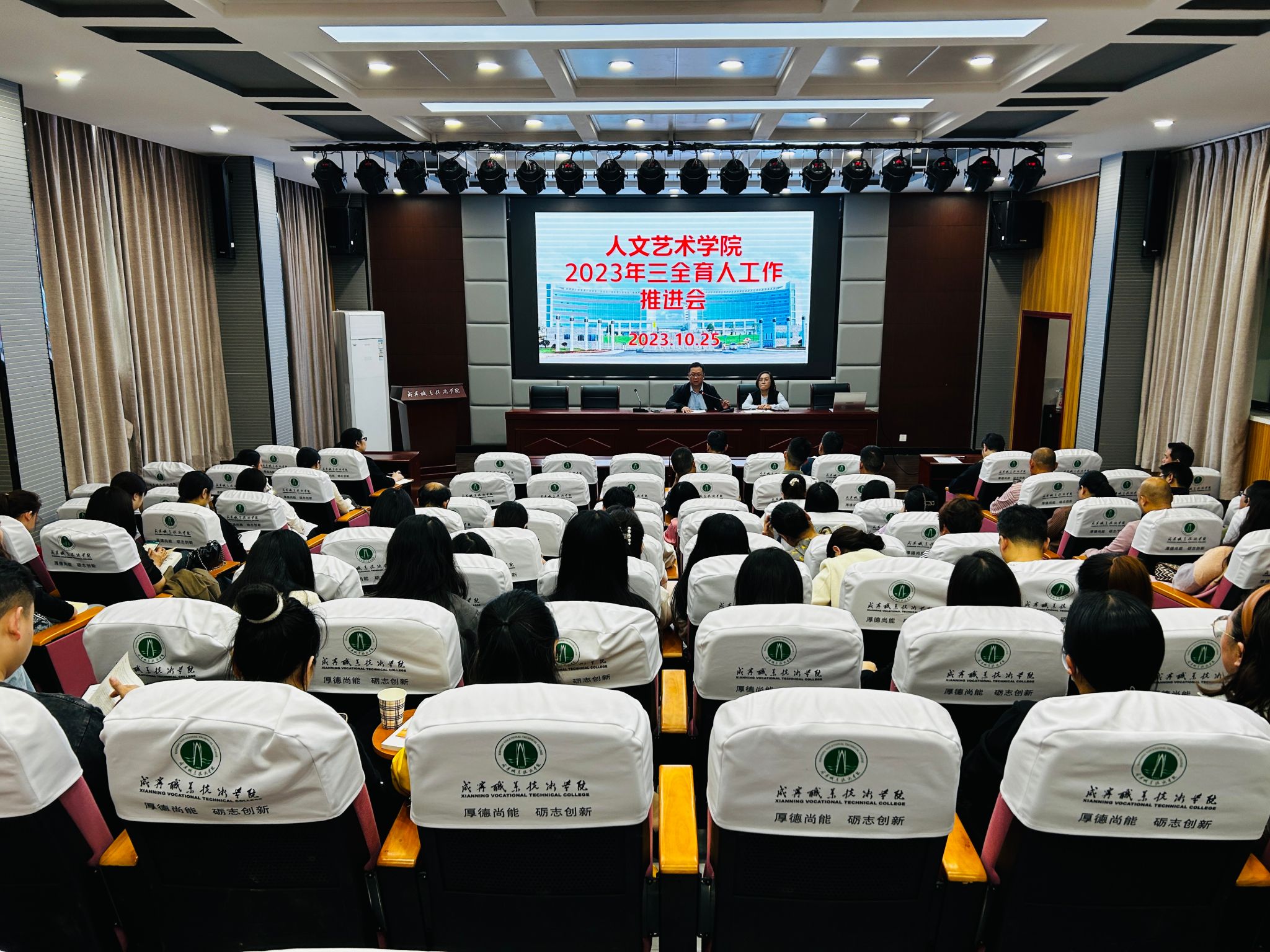 10月25日下午,beat365在线唯一官网在教育实训中心201召开“三全育人”工作推进会,学院党总支书记韩飞、院长余永欢及全院教职工参加会议,会议由韩飞主持。