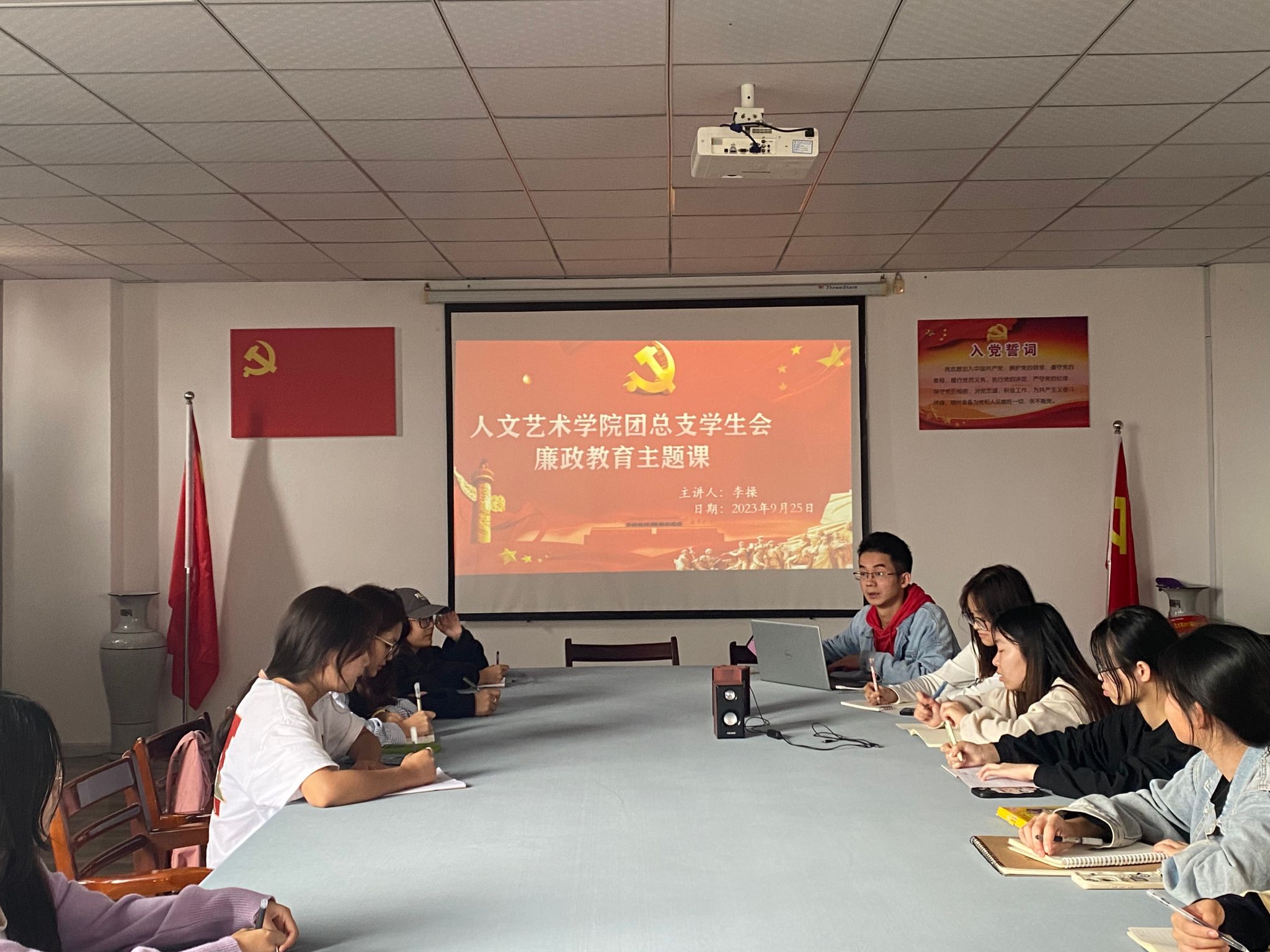 为进一步加强党规党纪教育,不断促进党风廉政建设宣传教育工作,提升宣传教育质量效果,10月9日中午,beat365在线唯一官网在教育实训中心7楼会议室召开廉政教育主题团课,会议由院团总支负责人李操主持。