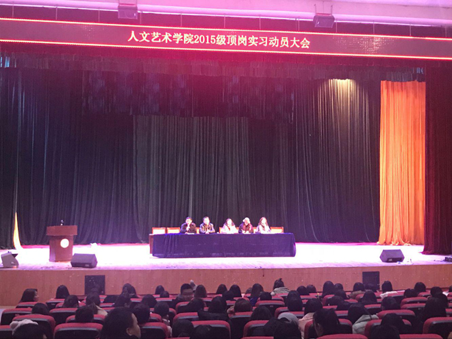 会议中,副院长余永欢首先作了动员报告,对即将开始的顶岗实习进行解读,并提出了各项具体要求;副院长余谦重点强调了顶岗实习的安全和管理工作;实习指导老师、学前教育专业教研室主任朱焕芝老师代表指导老师发言,勉励全体学生在顶岗实习过程中勤学苦练、学有收获;15级语文教育3班龚雪梅同学代表全体学生发言,表示将认真工作、学以致用,力争通过顶岗实习让个人成长、为学校争光。