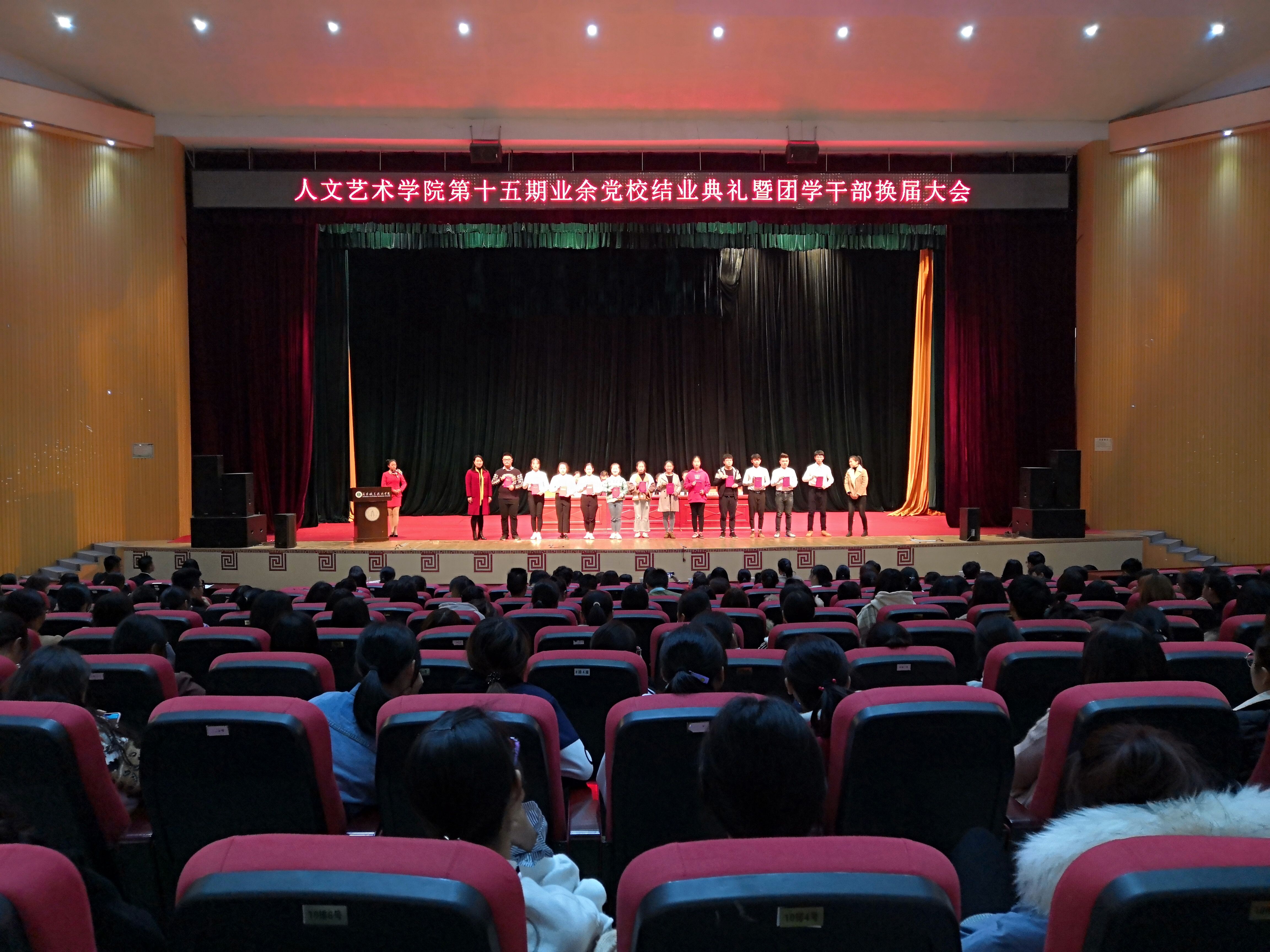 11月21日晚,beat365在线唯一官网在科学会堂举行第十五期业余党校结业典礼暨第五届团总支学生会干部换届大会。参会人员有beat365在线唯一官网党总支书记卢臻、副院长杨帅、党总支委员兼代理副院长方朝阳、学生科科长陈传红、团总支书记姜小梅、教师第一党支部书记丰津玉、教师第三党支部书记张云及全体辅导员。