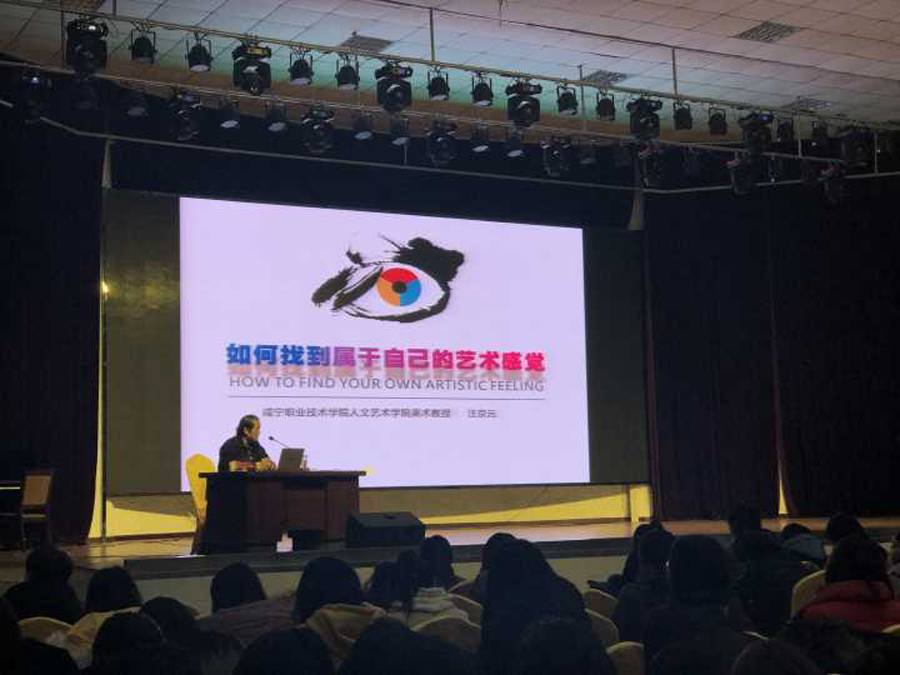 beat365在线唯一官网院长余永欢在致辞中阐明了“人文讲堂”开设的初衷,并对全体师生提出了期许,相信“人文讲堂”能够朝着预定的方向越办越好。汪京元教授的讲座围绕《如何找到属于自己的艺术感觉》的主题展开,汪教授从绘画、书法、摄影等方面结合自己的艺术创作、教学生涯展开诠释和讲解,就如何找到自己的艺术感觉提出了真知灼见,可谓是语重心长、发人深省,汪教授勉励师生以“活到老、学到老”的姿态在生活、工作中追求更高层次的艺术境界,力争使自己的人生充满艺术感。汪京元教授的精彩讲座引发了师生的强烈共鸣,在互动环节师生纷纷提出在艺术审美中的一些思考与困惑,汪教授均给予了耐心解答。