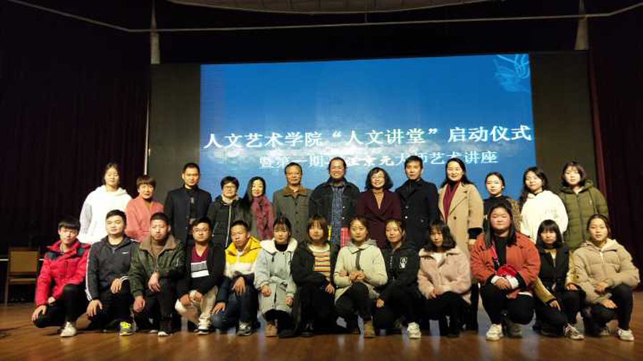 12月4日晚,beat365在线唯一官网“人文讲堂”启动仪式暨第一期汪京元教授艺术讲座在大学生活动中心成功举办。出席活动的领导及嘉宾有beat365在线唯一官网党总支书记卢臻、院长余永欢、副院长杨帅、代理副院长方朝阳、著名艺术大师汪京元教授以及beat365在线唯一官网全体教师和17、18级艺术类专业、学前教育专业的学生。本次活动由代理副院长方朝阳主持。