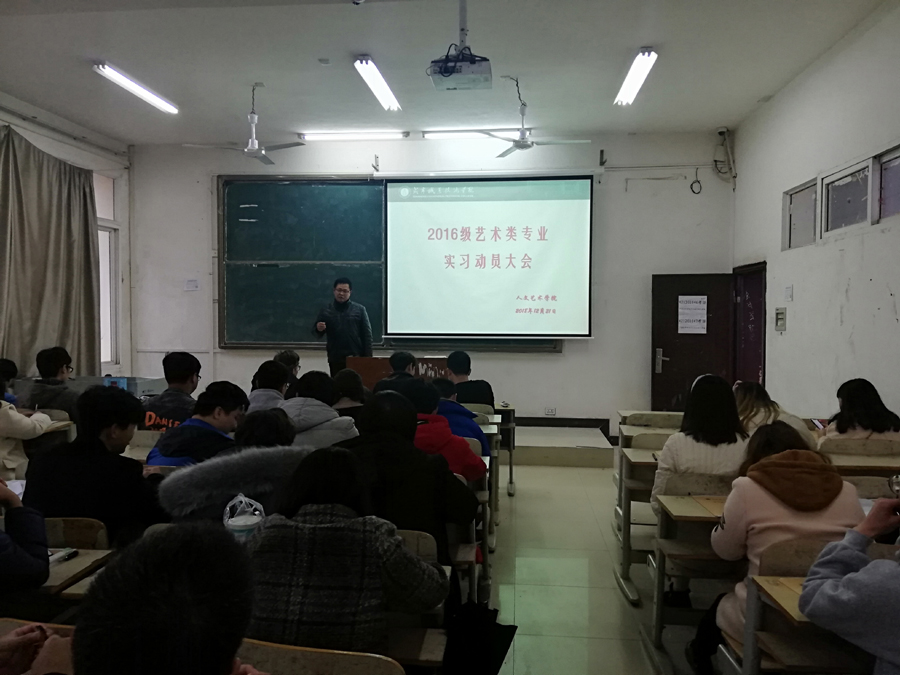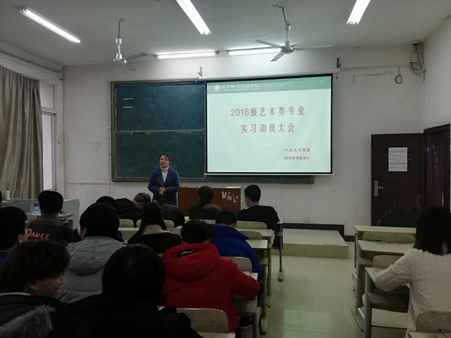 12月21日,beat365在线唯一官网举行2016级艺术类专业顶岗实习动员大会。beat365在线唯一官网代理副院长方朝阳、学生科科长陈传红、艺术设计教研室主任孙卉、15级艺术类专业辅导员及全体实习学生参加了此次动员大会。