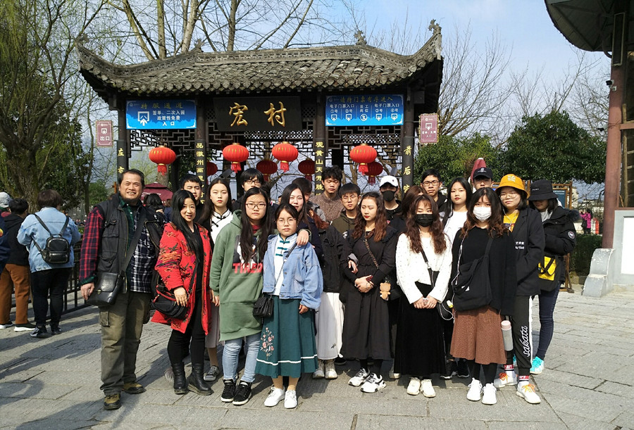 本次写生实践由艺术设计专业教师汪京元教授、刘银燕教授、范曼老师带队指导。行程跨越江西到安徽,途径簧村、河东河西、查平坦村、篁岭,安徽屏山、宏村等著名艺术景点。写生过程中,师生一起探讨徽派建筑肥梁瘦柱的特点,感受当地风水和建筑相结合的园林式布局。