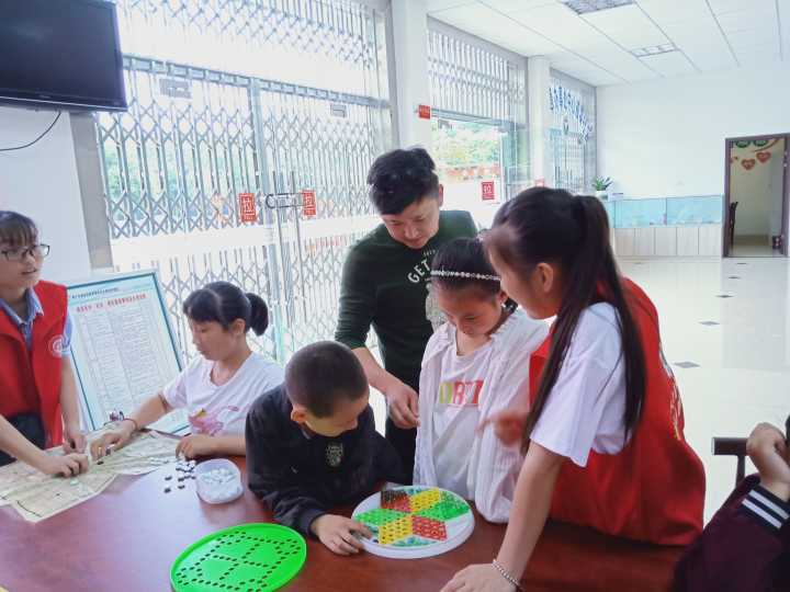在活动过程中志愿者们带领小朋友们跳绳、下飞行棋。在棋的世界里小朋友们互相进行切磋,领教,在跳绳时,小朋友们犹如闲庭信步,几乎没有磕绊,展示着自己身轻如燕的身手,笑声和汗水一同挥洒,这里成为了一片欢腾的海洋。