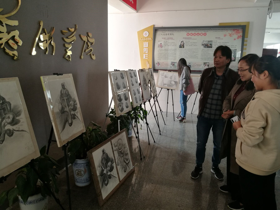 19级艺术设计班的学生在此次活动中共展出了几十幅个人素描绘画作品,展览作品主题鲜明,意蕴丰富。一幅幅素描作品栩栩如生,将静物以及人物细微的表现出来;一张张人物画像既体现出人物的形象和神态,同时也体现出了学生扎实的基础。各作品集思想性、艺术性、观赏性于一体,导向正确、各具特色,具有较高的品味。最后余永欢院长提出:此次展览不仅展示了我们教师的教学水平,也展示出了大学生的艺术设计专业的风采,希望同学们不断搏击,谱写人生壮丽篇章,继续努力,成就自我。