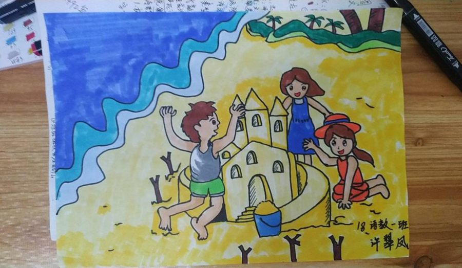 (简笔画《沙滩上的童话》获奖作品)