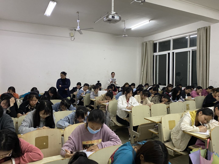 3月30日晚上6点半开始,进行“幼儿园教育活动设计”项目比赛。选手根据给定的素材与幼儿年龄段,进行幼儿园教育活动设计,主要考查学生幼儿园五大领域的集体教学活动设计、说课等综合能力。选手根据教师提供的范围任选主题与年龄段,设计一课时(30 分钟左右)集体教学活动的教案。教案格式完整规范,语言清晰、简洁、明了,目标设计、内容选择、方法运用符合幼儿年龄特征和领域特点,要求选手在1个小时内完成教案。随后,进行“职业素养测评”项目的比赛。该项目为选择题(50题),内容包括学前卫生学、学前教育学、学前儿童发展心理、学前儿童游戏、文化常识等方面,主要考核学生的专业知识及综合素养。学生通过云课堂,在线上完成幼儿教师职业素养测评,限时30分钟。