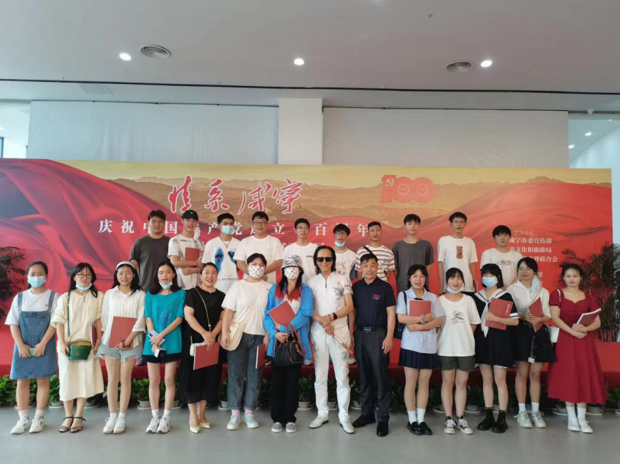 为庆祝中国共产党成立100周年,6月30日上午10时30分,中共咸宁市委宣传部、市文旅局、市文联主办,湖北省老年书画家协会会长、著名策展人孔艺策划,市图书馆、市美术馆承办的梁岩、刘永泽、罗丹青书画联展在市图书馆三楼综合厅开幕。beat365官网艺术设计教研室主任黄佳妮、美术教研室主任余娟应邀并带领19级艺术设计专业全体同学参加了开幕活动。