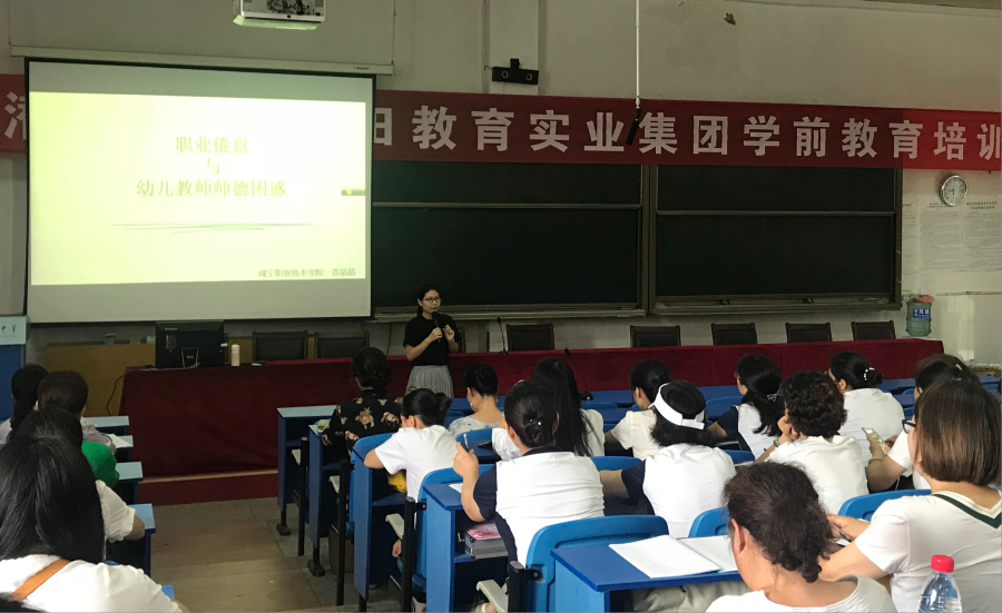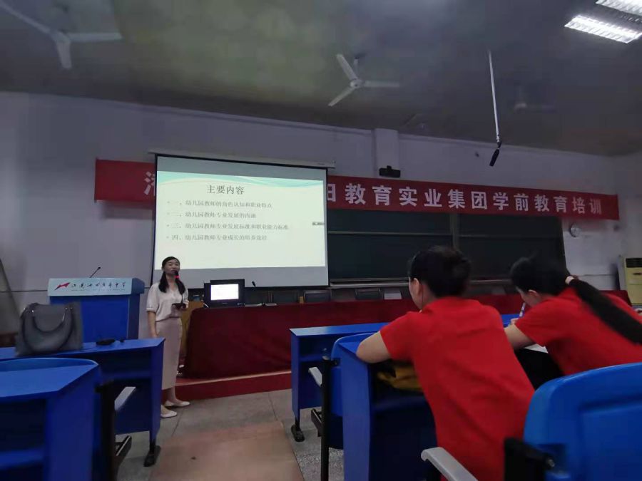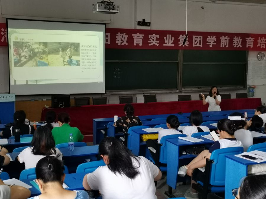 在为期两天的讲授中,老师们首先为当地幼儿园教师们深入讲解了什么是儿童和儿童观、教师和教学观,用案例形象生动的分析了幼儿园教师专业素养让老师们更加直观的学习和内化《幼儿园教师专业标准(试行)》,提升职业的认同感和责任感。其次,从解读幼小衔接背景与理念到幼小衔接课程设计与实施,帮助幼儿园教师及园长们正确的认识幼小衔接问题,科学做好幼小衔接工作。同时,从幼儿园法律法规与职业道德入手,用理论结合案例等多种形式阐述了新时代教育法律与教育情怀,教师维权与教育担当,结合幼儿园常现安全问题等多种案例剖析进一步提升了老师们的法律意识。最后,老师们还针对环境创设和幼儿园教师们分享了来自全国各地的实例环境创设图片,从区域环境创设和游戏目标这两个层面提出,低成本、有质量环境的路径之一是把握幼儿园教育活动的特点,要开展生活化、游戏化、活动性、整合性的幼儿园教育活动。授课过程中,老师们的授课让各位幼儿园教师和园长们对幼儿园教育理论的问题有了更深的了解,更新了教育理念。