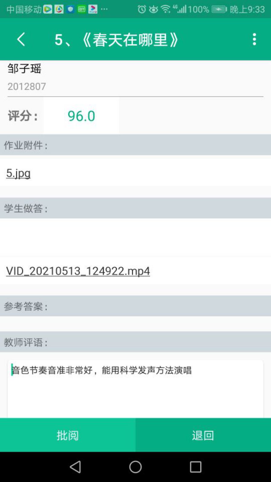 技能训练导师朱珊在职教云为学生批阅的作业(二)