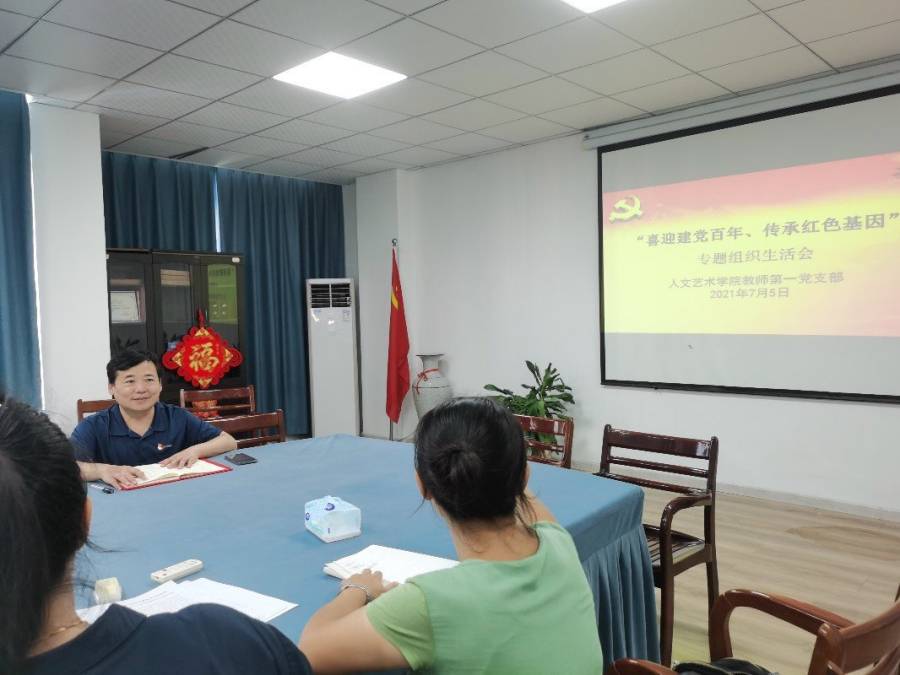 2021年7月5日下午,根据校党委要求,为了落实全面从严治党,推进“两学一做”教育的常态化和制度化,严肃规范“三会一课”,beat365在线唯一官网教师第一党支部以喜迎建党百年为契机,在教育实训中心701室召开了组织生活会。组织生活会由支部书记丰津玉主持,校纪委书记余为民同志以普通党员身份出席了会议。
