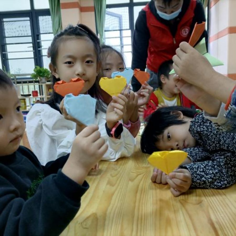 咸宁市残疾人联合会对志愿者的到来表示欢迎。活动现场布置完毕后,志愿者开展了一系列的互动活动。在“快乐棒棒糖”活动中,激发了小朋友们的想象力。紧接着,志愿者与小朋友们开展“折颗心送祖国”折纸活动,锻炼了小朋友们的动手能力。活动尾声,为保障小朋友们的身心健康发展,志愿者还与小朋友们开展“小狗快快跑”活动,小朋友们在欢快的氛围中,感受到了来自志愿者的亲切关爱。