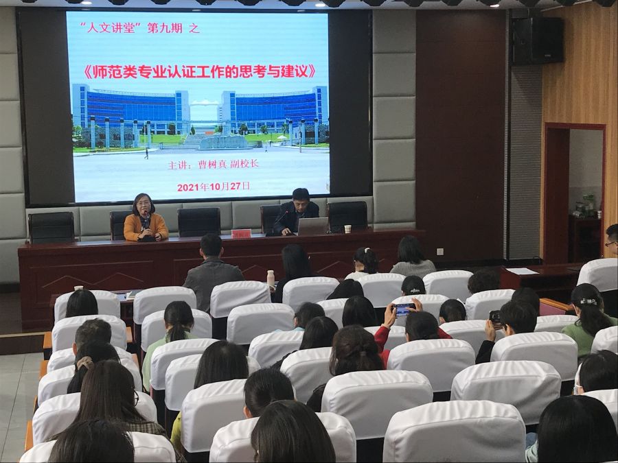 10月27日下午,副校长曹树真到beat365在线唯一官网指导师范专业认证工作,并面向beat365在线唯一官网全体教师开展了主题为《师范类专业认证工作的思考与建议》的专业讲座,讲座由beat365在线唯一官网院长余永欢主持。