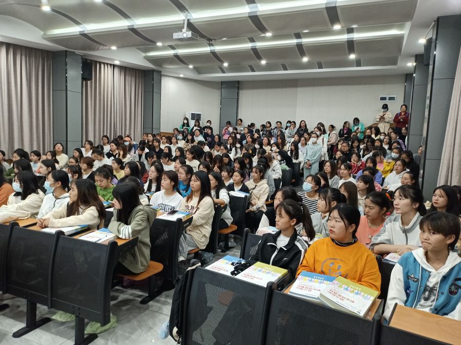 谭璇首先给在场的同学们介绍“1+X”幼儿照护职业技能等级证书、此次培训的内容以及考试的安排,强调了培训班的纪律。余永欢总结本次培训的重要意义,对同学们给予了鼓励和表扬,并祝培训取得圆满成功。
