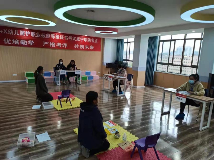 本次考试由教育部认定的职业技能评价组织——湖南金职伟业母婴护理有限公司负责全程监督与证书认定。考试严格遵循考培分离原则,保障考评工作的公平公正,特由武汉外语外事职业技术学院夏泽天老师担任本次考试的考务督导员,咸宁职业教育集团杜君、郭格老师,武昌职业学院郭萍老师担任实操考评员。考试严格落实疫情防控要求,工作人员积极引导学生测温、登记、核验身份信息,确保考试顺利开展。