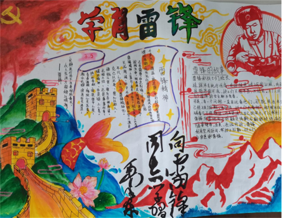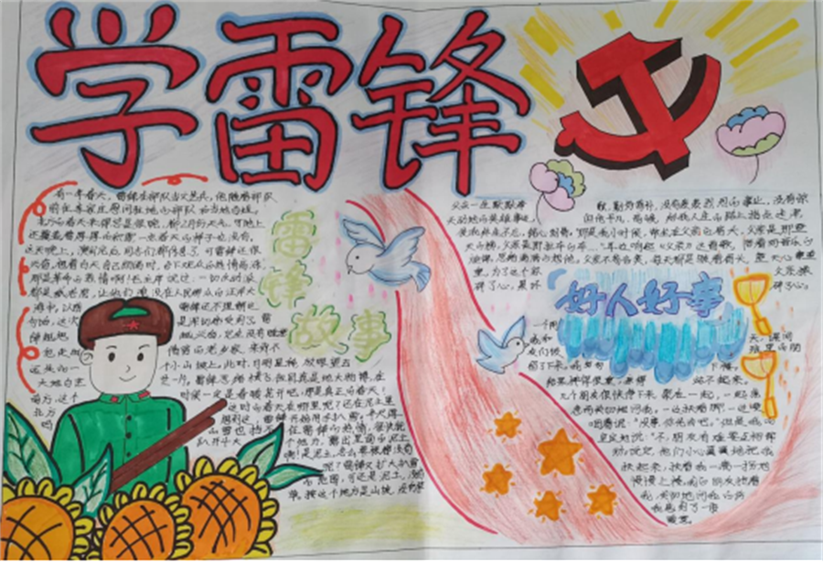 此次活动共收到52份作品,同学们通过图文并茂的形式在手抄报上展示了雷锋的“钉子精神”,歌颂了他全心全意为人民服务的品质。经过细致的评选,决定评选出12份优秀作品,其中,管卓英和周妙婵的作品荣获一等奖。
