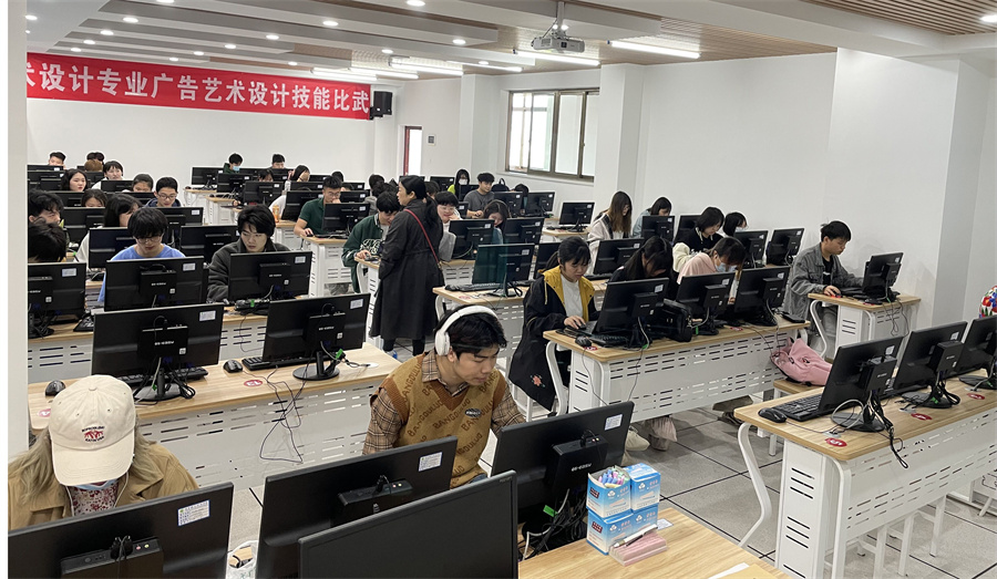 艺术设计专业2022年学生技能竞赛决赛于5月2日在教育实训中心605如期开展,此次比赛是学校技能文化周“技能成才 强国有我”主题活动的一个分项目,20级艺术设计专业的47名学生经过近三个小时的角逐,呈现出许多优秀的创意设计作品。