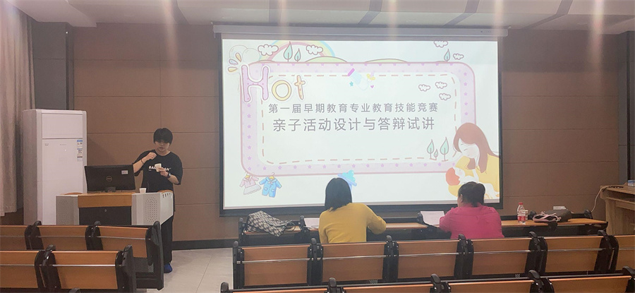 此次早期教育专业教育技能竞赛根据“幼乐美杯”全国职业院校早期教育专业保教技能竞赛的比赛设置,将整个比赛分为三个项目,项目一“早教教师职业素养综合测评”,项目二“0-3岁婴幼儿保育技能考核与测评”,项目三“早期教育亲子活动设计与答辩试讲”。