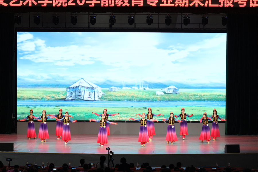 本次考核是《幼儿歌曲表演》课程考核方式改革的又一次积极探索。为全面检验学生两年的系统舞蹈课程的学习成效,考核方式采取以班级为单位进行综合剧目表演,通过红色文化系列、民族民间系列、儿童校园文化系列三个单元剧目的展示,重点考查学生们的综合表演能力。此次汇报考核充分展示学生的舞蹈基础知识、创编能力和综合表演的水平,也是对即将入园开展课程实训的一次预演。